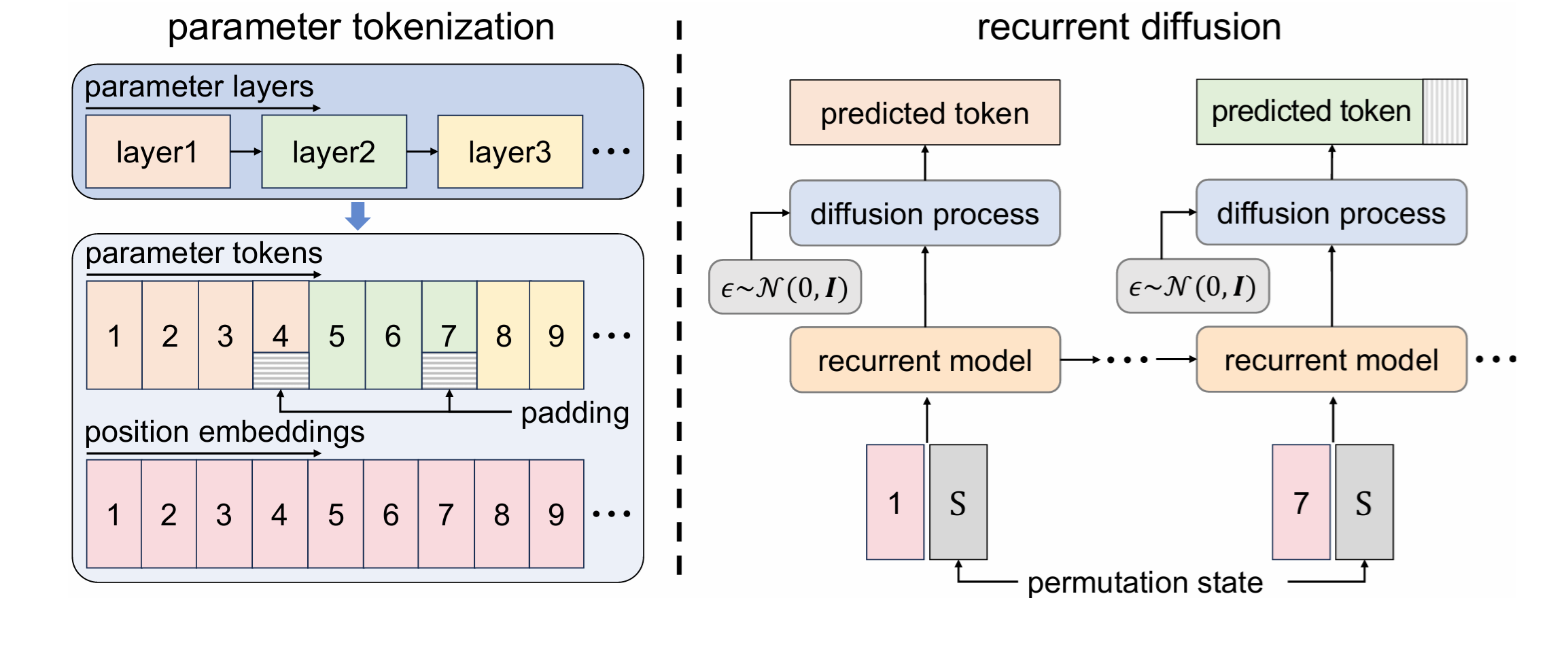 Recurrent Diffusion for Large-Scale Parameter Generation